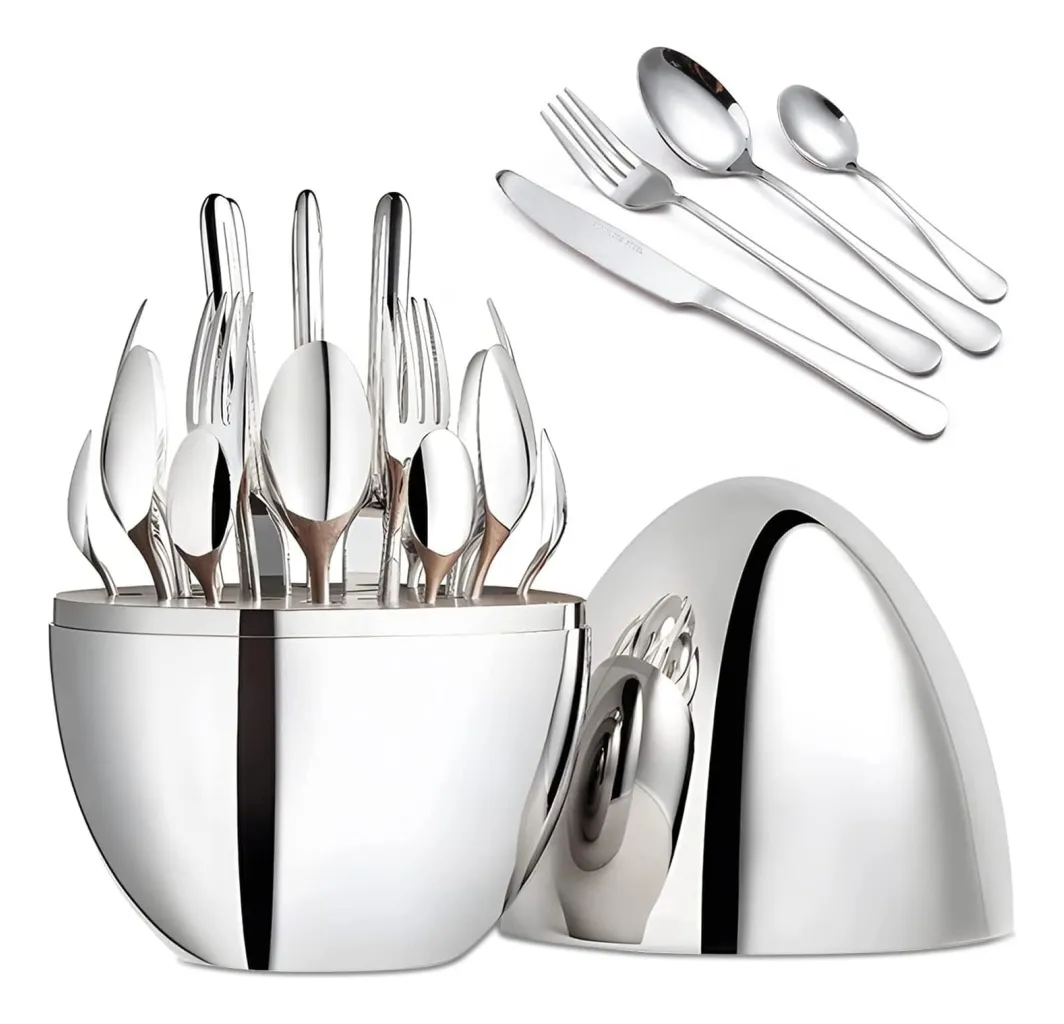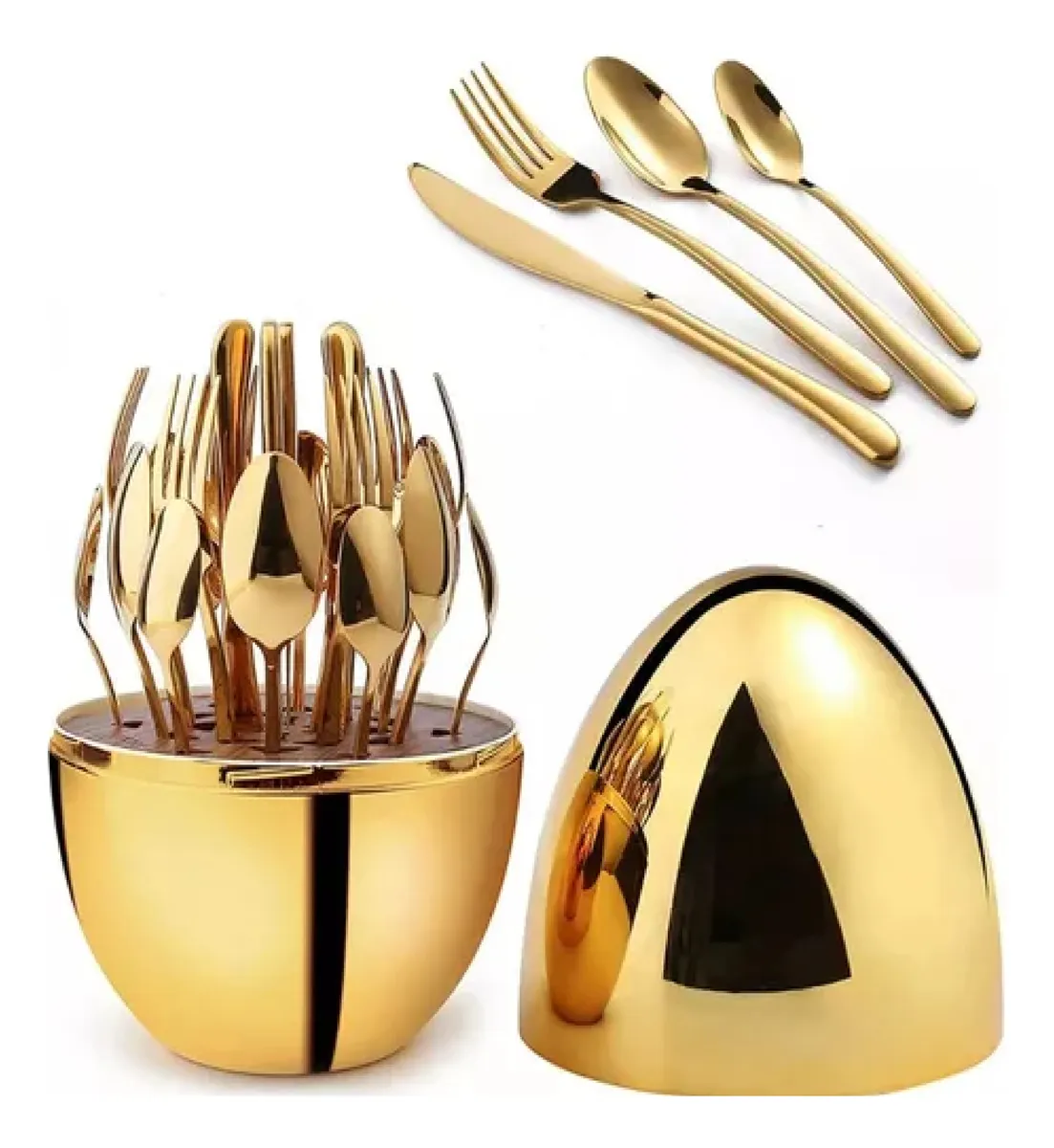 Juego de cubiertos en acero inoxidable 410 de grado alimenticioresistente a manchas y oxidacion. juego de 24 piezas para 6 personas. cuchillos en hoja de sierra afilada. Caja de acero inoxidable con llamativo diseño Garantía del vendedor: 30 días
