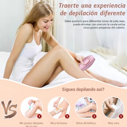 >>>Depilación con IPL<<< La depilación mejorada utiliza la tecnología IPL (luz pulsada intensa), diseñada para ayudar a romper el ciclo de crecimiento del vello dirigiéndose a la raíz o el folículo del vello para ayudarlo a lograr una depilación y una piel suave. 12 semanas, más del 90% del crecimiento del cabello se reduce o ralentiza, con fines estéticos y terapéuticos. >>> Niveles de energía ajustables<<< Nuestro depilación láser cuenta con 5 niveles de energía ajustables para adaptarse a todo tipo de pieles (incluidas las sensibles), proporcionando a hombres y mujeres la experiencia y los resultados de depilación más cómodos y completos. Se recomienda comenzar con el nivel 1 para el primer uso y aumentar gradualmente el nivel a medida que se acostumbra. >>>Rápido y eficaz<<< Este sistema de depilación utiliza una nueva lámpara de cuarzo que es más duradera, segura y resistente al calor. Su calidad es mucho mejor que la de otras bombillas de cristal, lo que hace que el destello sea más intenso. Se reduce la sensibilidad de la piel. La depilación final y la piel suave se completan después de 8-12 semanas. >>>Depiladora indoloro<<< En comparación con la depilación de salón, la depiladora IPL le ofrece una experiencia de depilación cómoda e indolora pero eficaz. Un sistema profesional de tratamiento de IPL es adecuado también para mujeres y hombres. El uso hogar de la depiladora IPL es la solución económica para usted en casa, no necesitas gastar mucho dinero y tiempo cada mes para concertar citas.