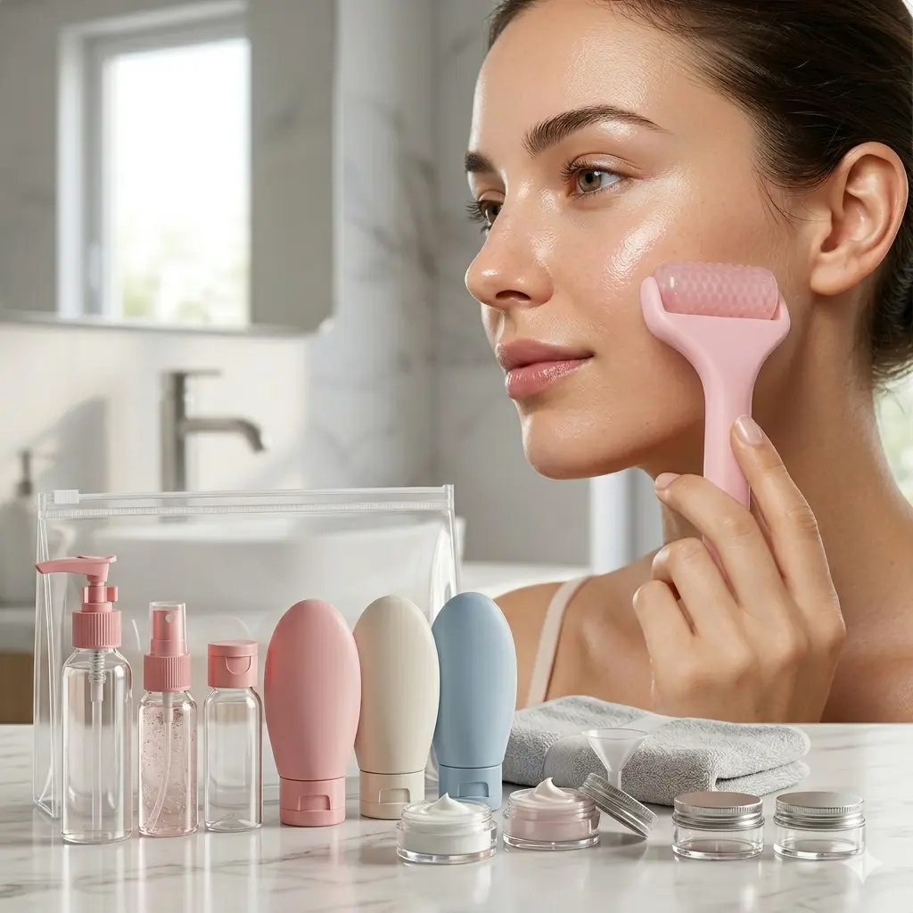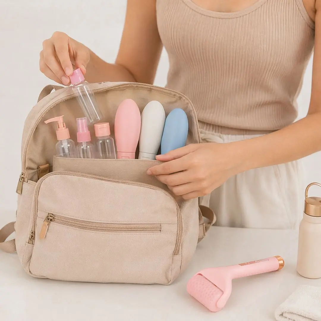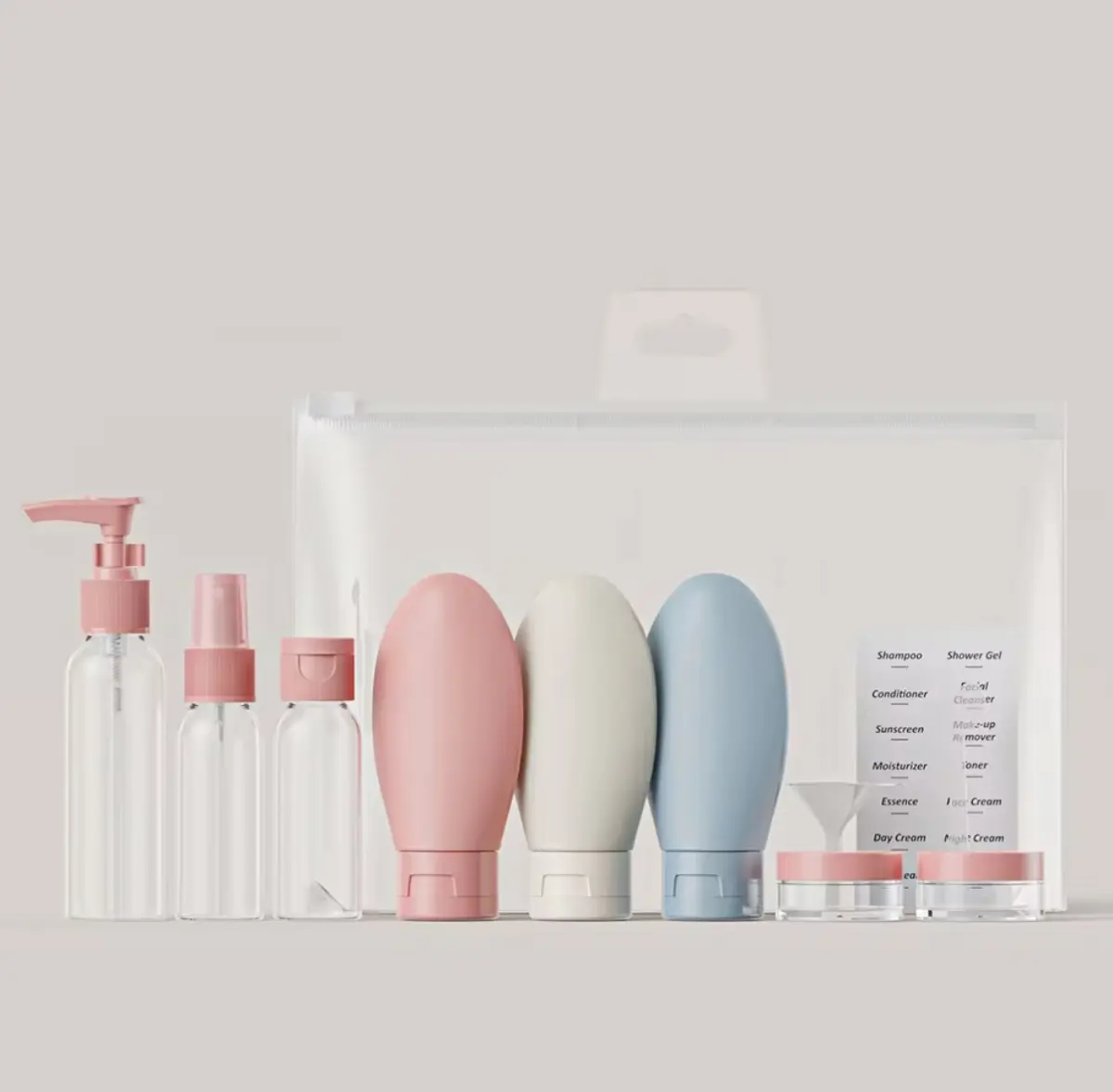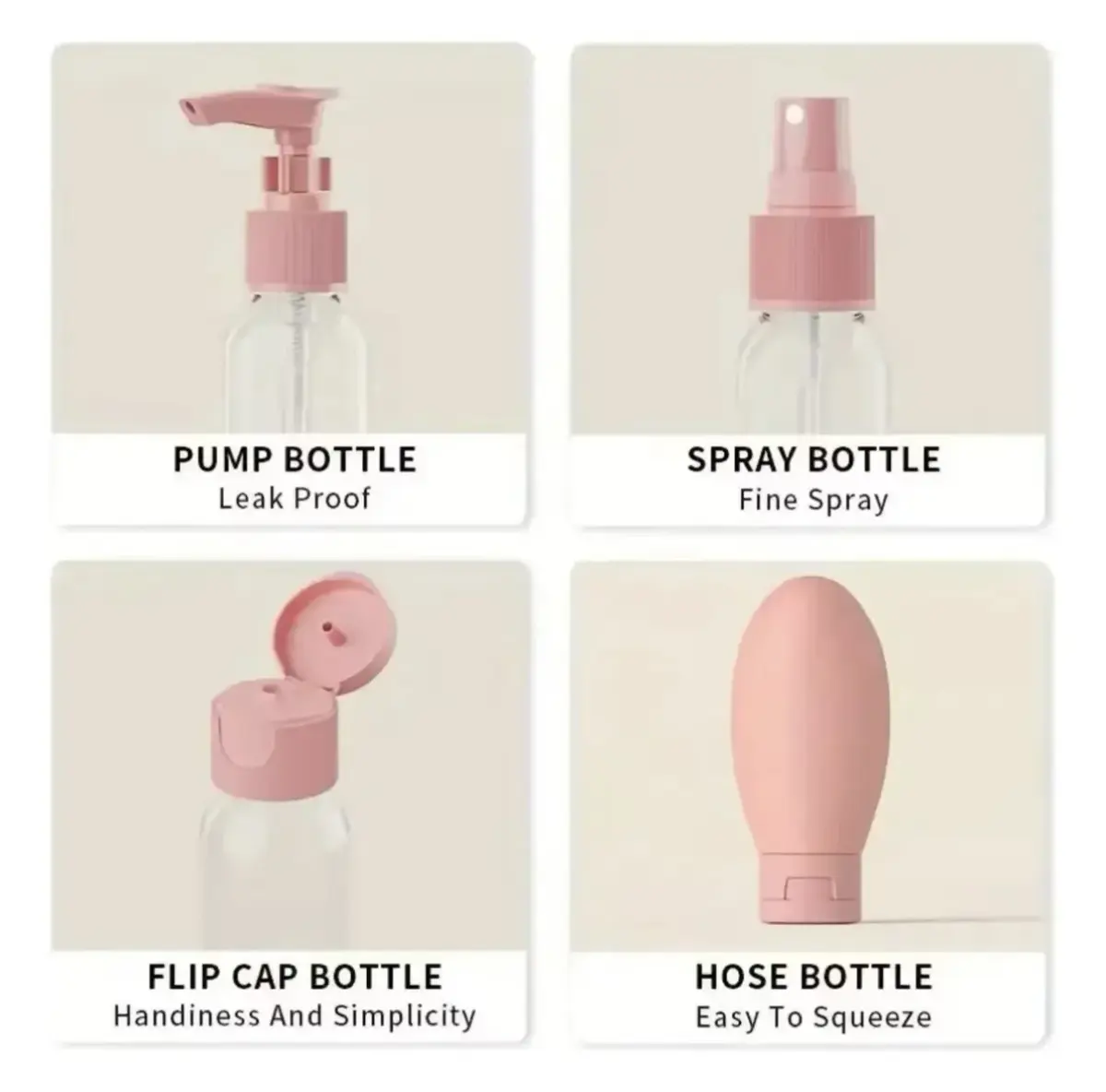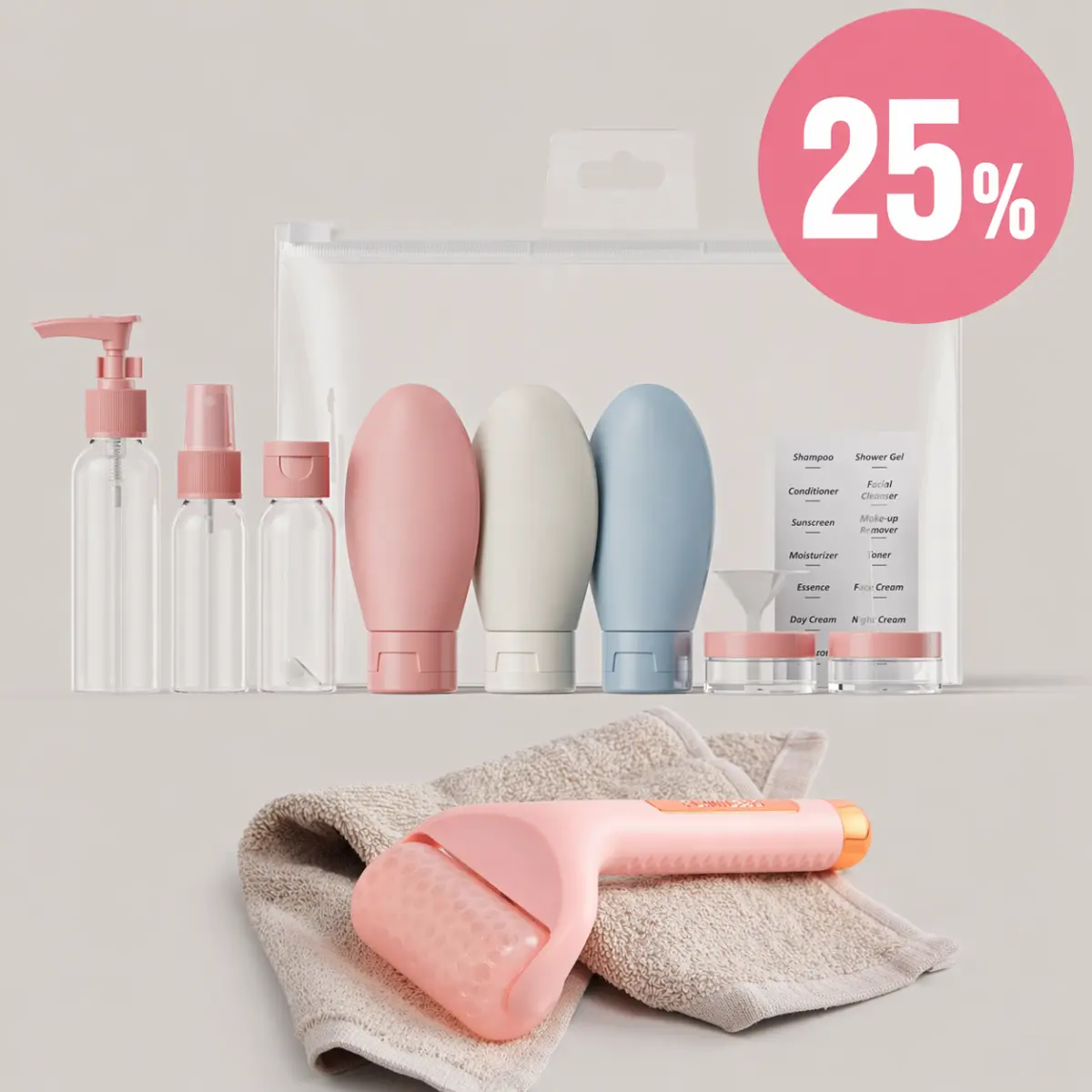 • Un set de envases reutilizables, perfectos para llevar tus productos favoritos de forma organizada y sin derrames.