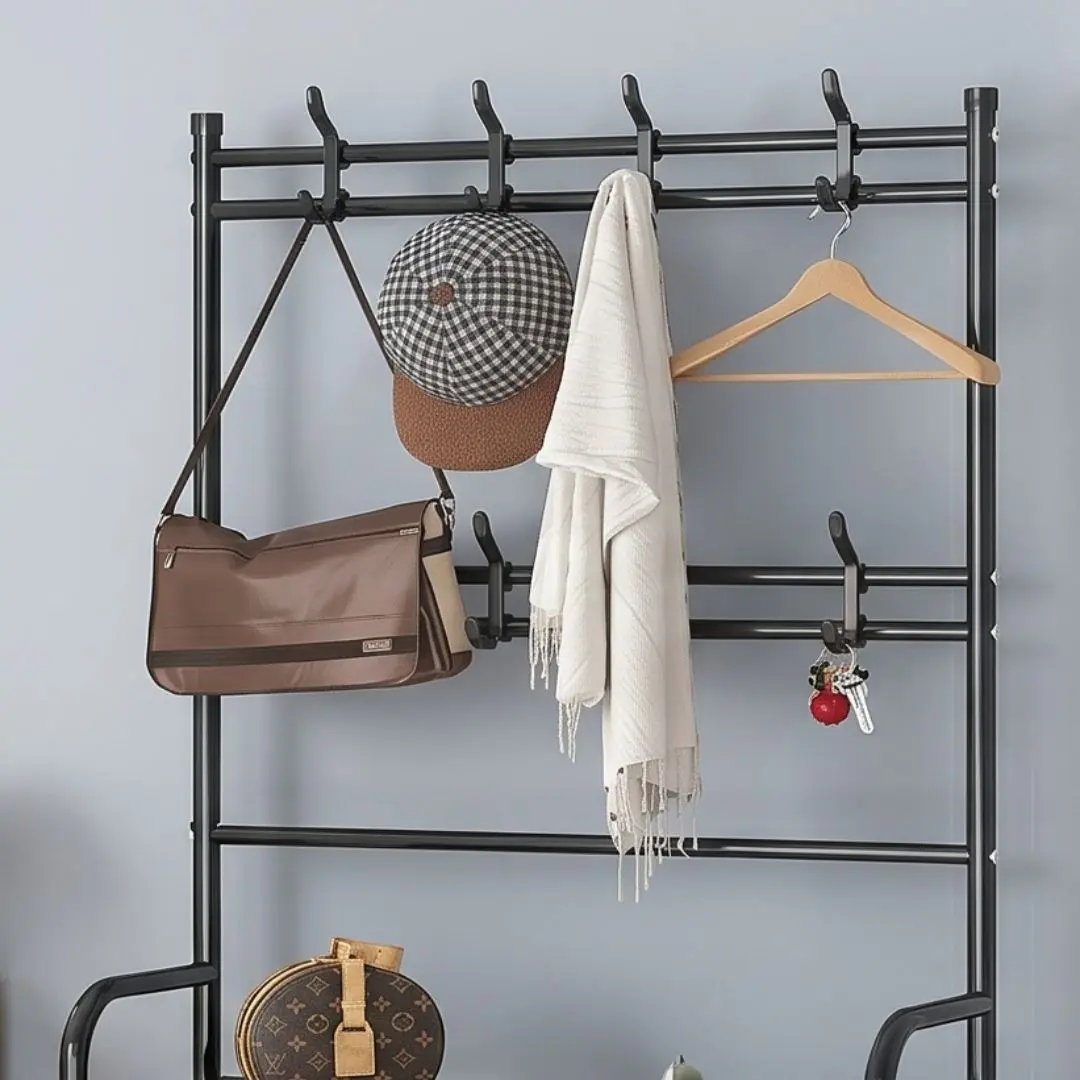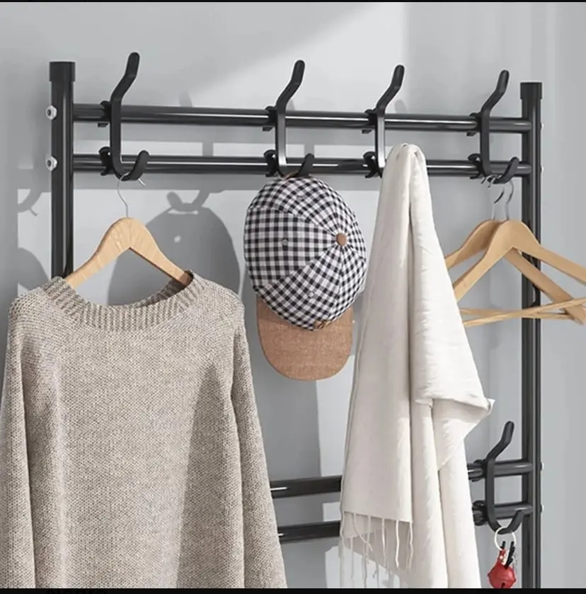 Fabricado con tubos de acero de alta calidad y conexiones de plástico reforzado, garantiza estabilidad y durabilidad en el uso diario. Su estructura ligera facilita moverlo y ubicarlo donde lo necesites, ya sea en tu habitación, entrada, oficina o vestidor.